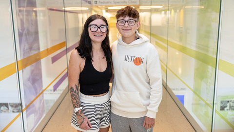 Kamryn (left) and Brooklyn Soroka pose for a photo during a family vacation. The siblings have genetic cardiomyopathy and both received heart transplants at UI Health Care.